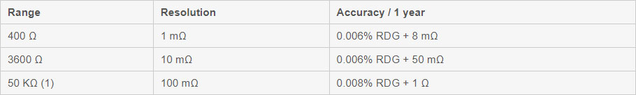 - Resistance Up to 0.006 % RDG and 50 KΩ range