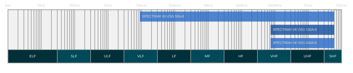 The SPECTRAN® V6 VSG series offers up to 240 MHz gapless real-time signal generation (complex I/Q) from 75 MHz to 6 GHz. Various modulations are possible.