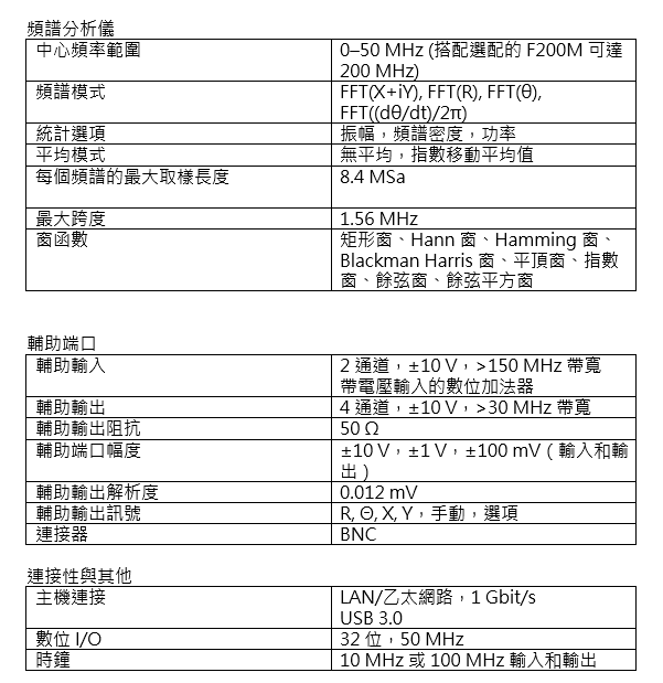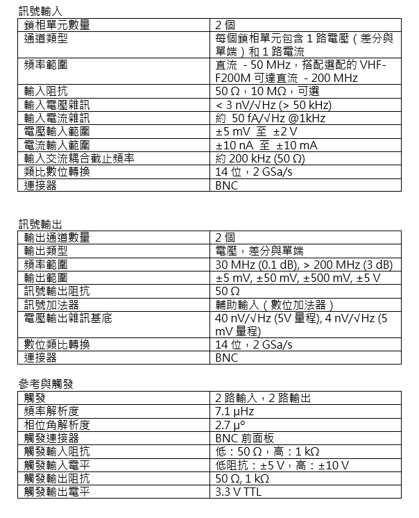 50 MHz / 200 MHz 鎖相放大器主要特點