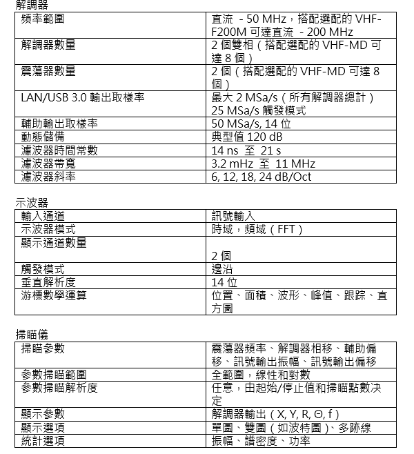 - 分析、生成與控制功能覆蓋直流至50 MHz(搭配選配的VHF-F200M可達200 MHz)