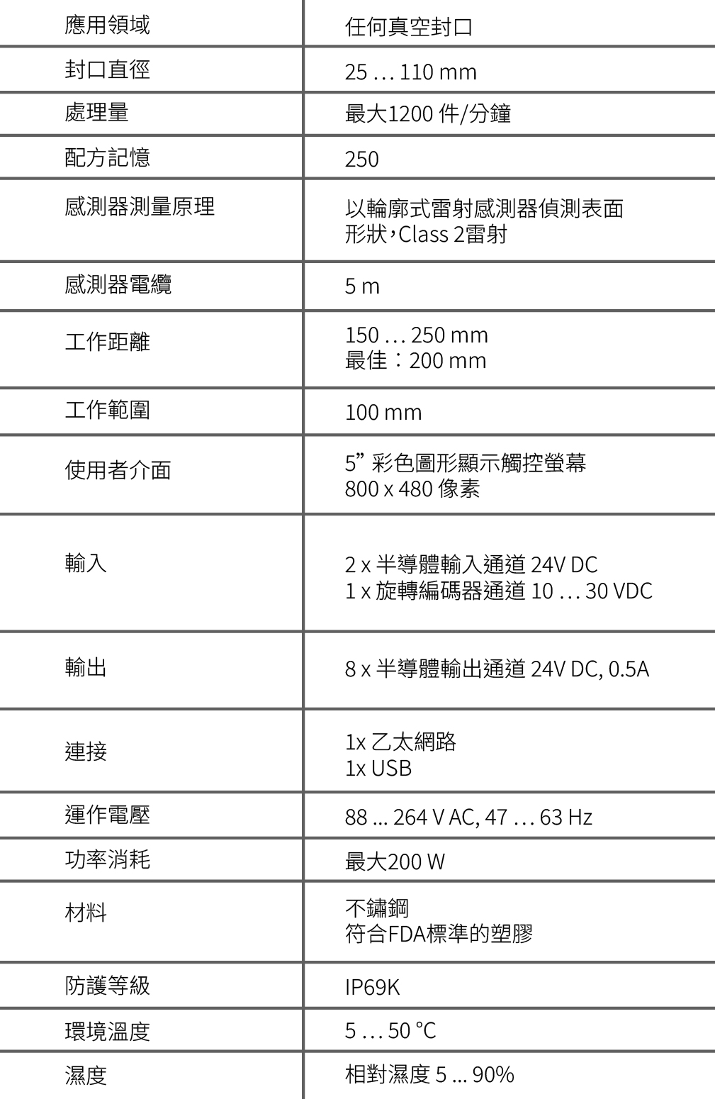 透過輪廓式雷射感測器,可在存在真空的情況下,可靠量測所有常見封口形式,不受材質、顏色與表面結構影響。其100 mm 的大工作距離,通常可在更換配方時無需重新調整感測器。
