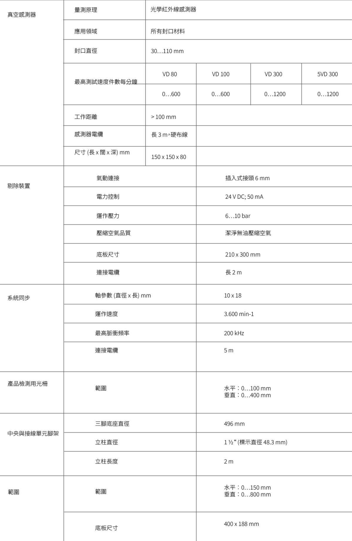 感測器會量測瓶蓋面的變形量,它與容器內部真空度直接相關。量測數據由測試軟體進行分析,並透過與標準樣品的數據比較來判定容器的氣密性。目標值可透過簡單直覺的 Teach-in功能自動設定。所有容器參數皆依容器格式個別儲存,設定只需按一下按鍵即可完成。