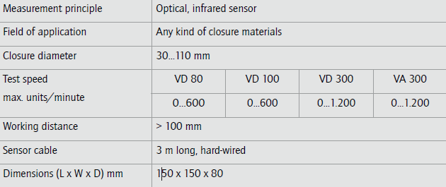 The non-contact, 100% in-line vacuum inspection of jars, bottles, cans and similar containers is carried out within the production process. Containers which show insufficient vacuum, cocked/tilted caps or missing caps are reliably identified and automatically rejected.