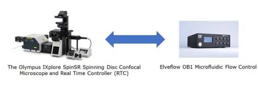 本應用說明如何使用 Olympus 旋轉圓盤共聚焦顯微鏡與 Elveflow 壓力驅動流量控制微流體系統結合同步輸入和成像。