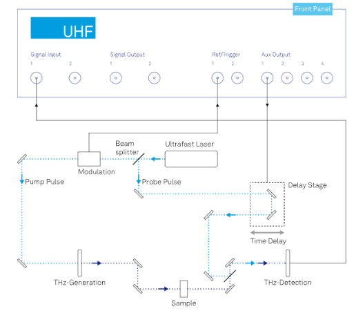Zurich Instruments (ZI) 的測量平台(例如輕巧強大的 MFLI (可支援DC-5MHz)或旗艦級的 UHFLI(可支援DC-600MHz))完美解決了上述痛點,為 THz-TDS 實驗帶來了典範轉移: