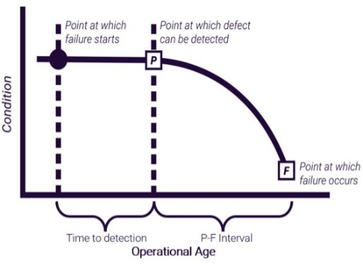 一般而言,P-F 曲線可為操作人員提供指引,說明潛在故障隨著時間的推移而發生的情況。